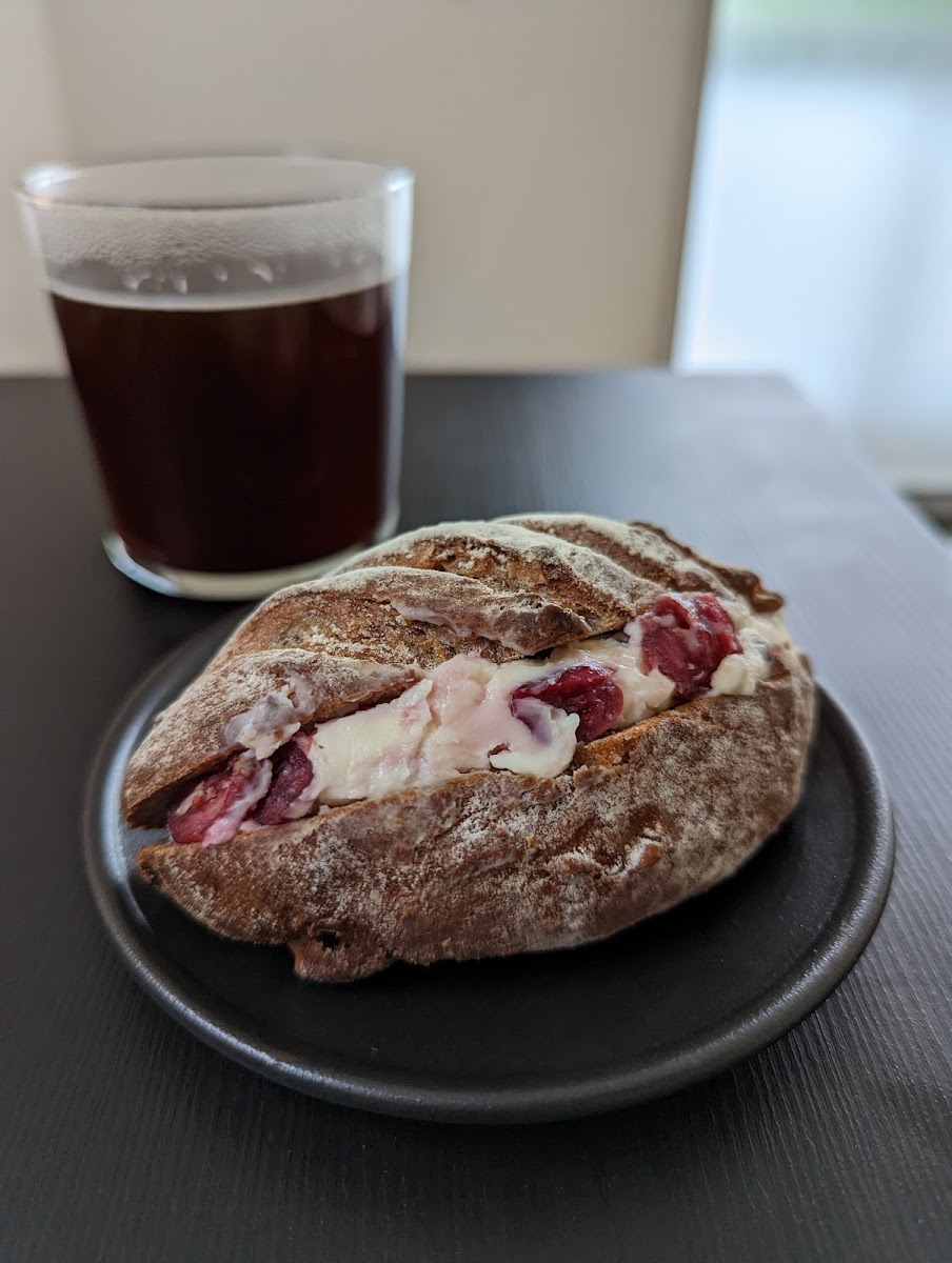 近所を自転車で徘徊中、美味しいパンが食べたくなり、Googlemapで検索して訪問しました。 日曜日の15:00頃でしたがあいにくバゲットが切れているとのことだったので、 じゃあ甘いパンをいくつか買っていこう、と選んでいると食パンでよければサンドイッチにします、と提案していただきました。 厚切りの食パンはふわふわもちもちで小麦の甘さが感じられて、とっても美味しかったです。 一緒に購入したいちじくとクリームチーズのハード系パンとぽわんとしたカスタードクリームパンも美味しかったです。 良い休日になりました。 ご馳走様でした