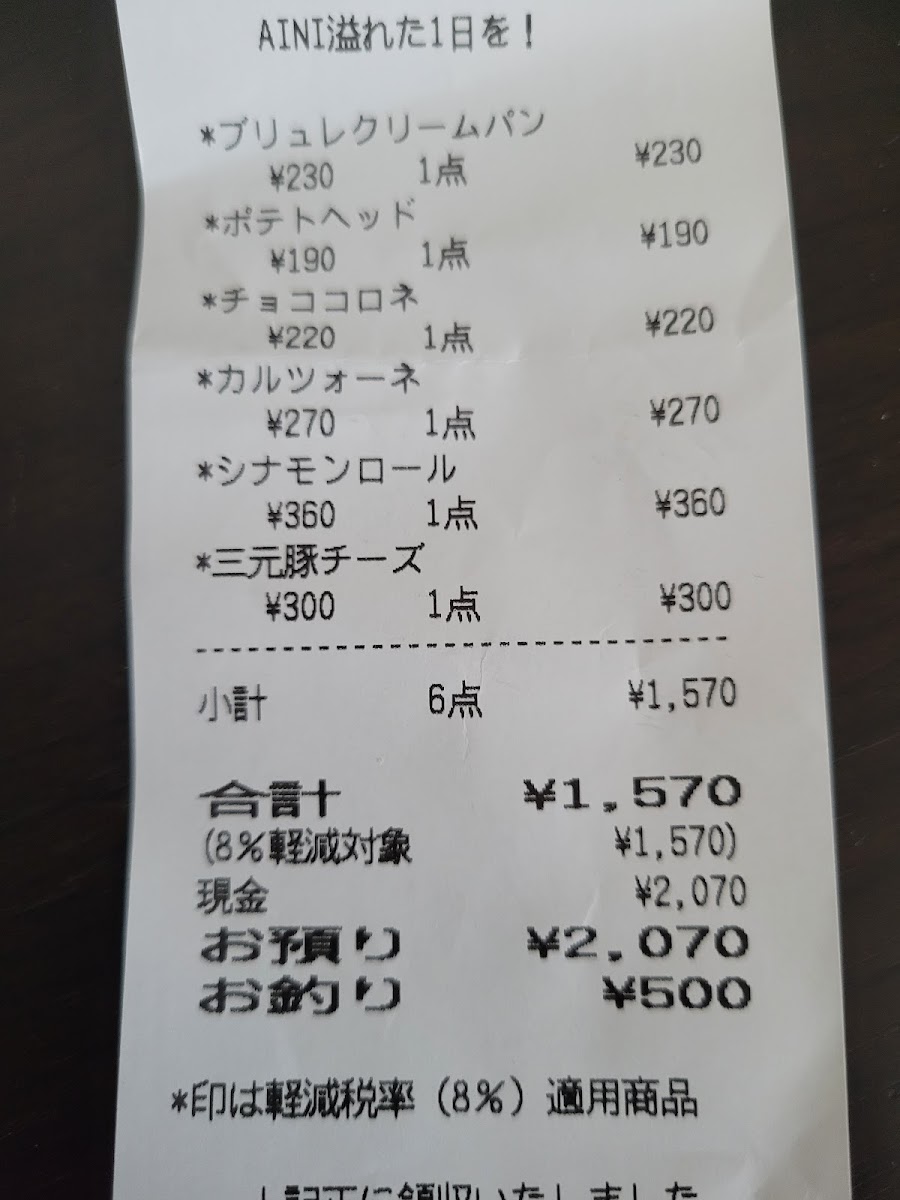 BAKERY&CAFE AINI Menu